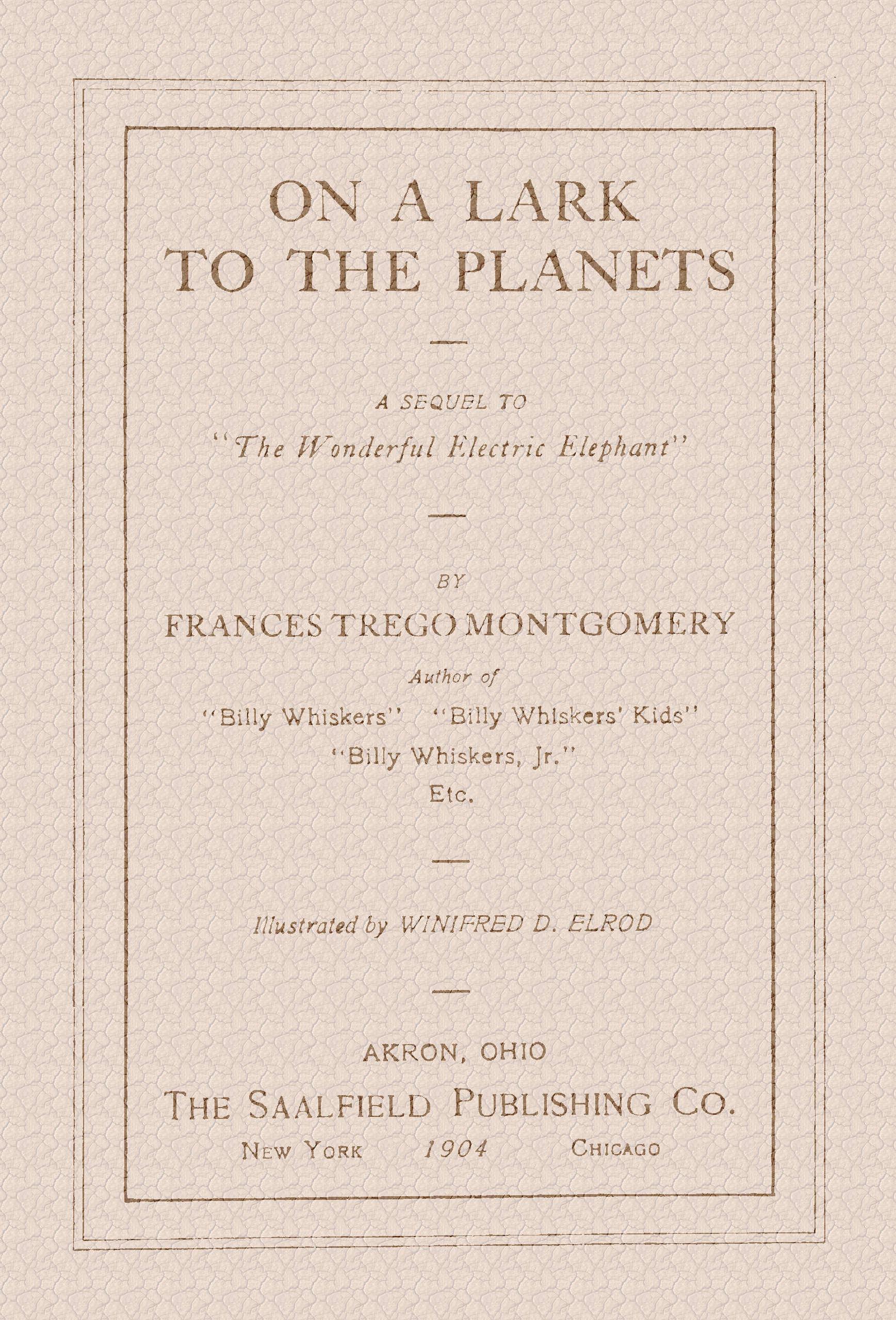 On a lark to the planets: a sequel to "the wonderful electric...