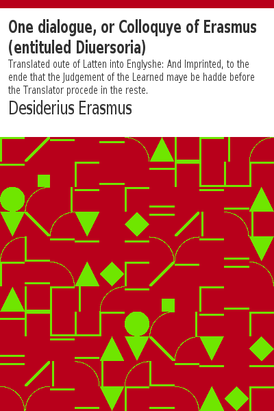One dialogue, or Colloquye of Erasmus (entituled...