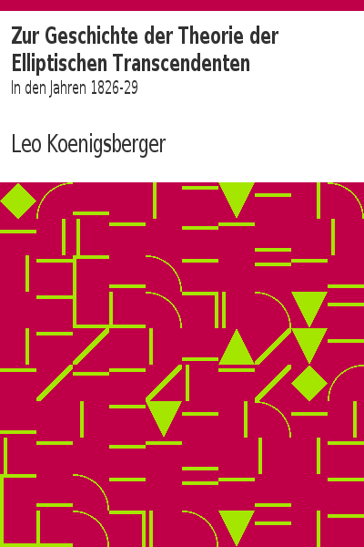 Zur Geschichte der Theorie der Elliptischen Transcendenten In den...