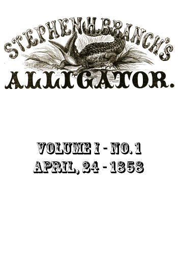 Stephen H. Branch's Alligator, Vol. 1 No. 1, April 24, 1858