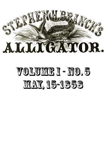 Stephen H. Branch's Alligator, Vol. 1 No. 5, May 22, 1858